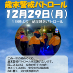 - 巳年最後のパトロール!12月29日(月)2025年最後となるパトロール、「歳末警戒パトロール」を実施いたしました。その前に、18時50分より、成城消防団第五分団の団小屋前で、激励会が行われました。成城消防署署長よりの激励を受け、その後意気揚々 […]