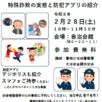 - 会員研修会のお知らせ法人格砧町自治会では、会員の皆さまの関心の高い話題について、毎年研修会を行っています。今年は、2月28日(土)10時より、法人格砧町自治会 会館大広間(砧6-22-11)で行います。今回は、防犯にフォーカスして、なかでも […]
