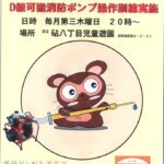 1月22日(木)20:00より、区立砧八丁目児童遊園(砧8-2-21)で、毎月定例のD級可搬式消防ポンプの 、…