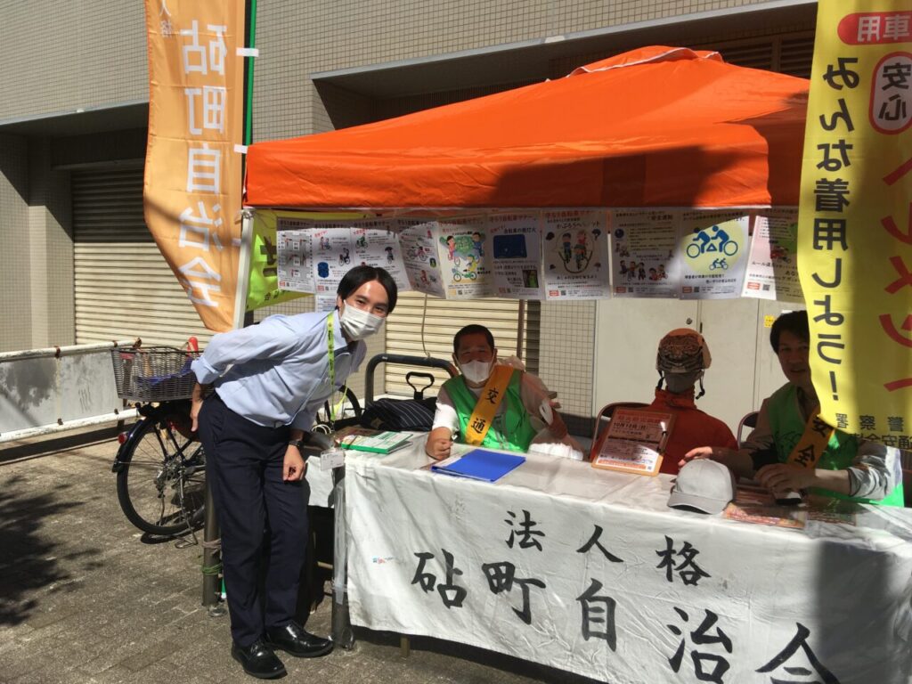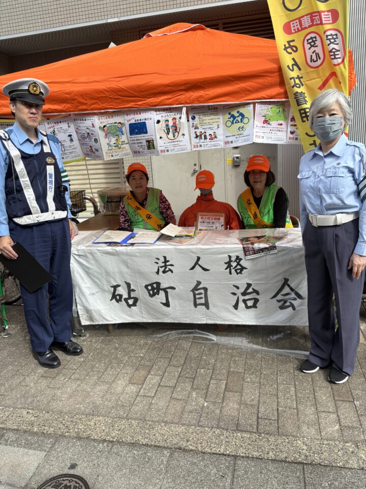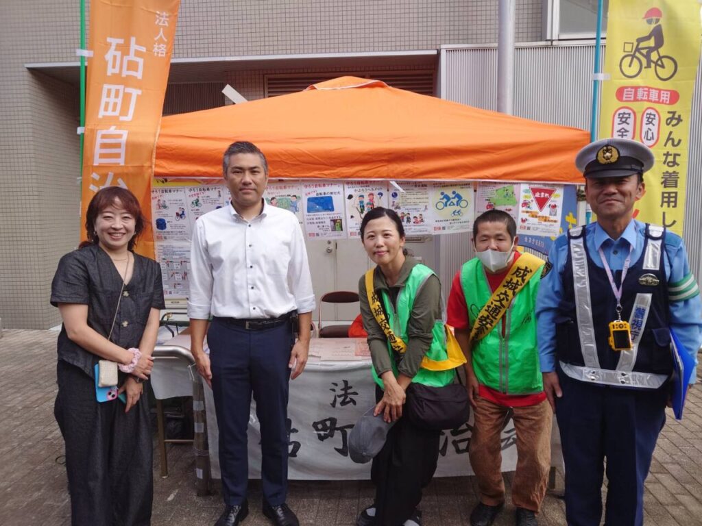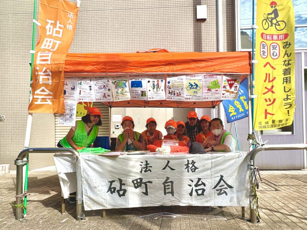 秋の全国交通安全運動(9月21日~30日)が、無事終了いたしました。法人格 砧町自治会では、城山通り沿い、砧で一番の交通量(車も人も)を誇る、きらぼし銀行様横の交差点直近に、幕舎を構え、町の交通安全を見守りました。と同時に、自転車の乗り方のポスター掲示や、ヘルメット着用を促すため、ヘルメットの現物展示も行いました。多くの皆様にご協力いただき、無事に10日間、任務遂行いたしました。