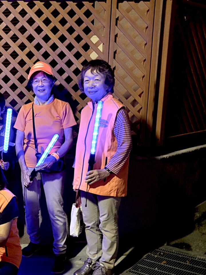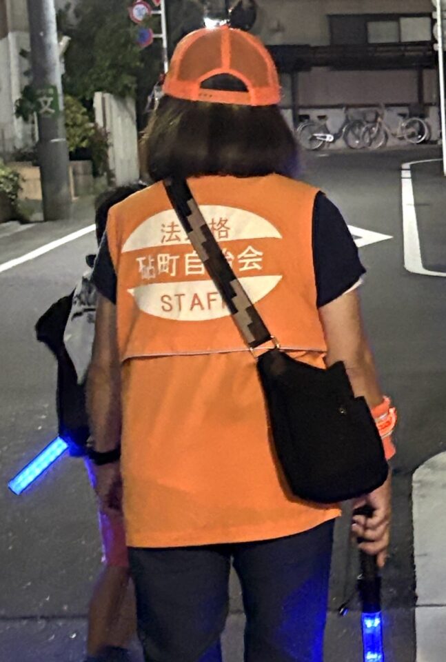 朝の見守りパトロールと同日、夜の町内パトロールを実施いたしました。この日(10月6日)は十五夜、あした7日は満月です。すこし曇り空でしたが、十五夜で、ウサギが見えるかな?メンバーはいつものように、”若みえ”のオレンジカラーに身を包み、ピカピカ光る警棒をもって、砧の町に繰り出します。地道ではありますが、見せるパトロール活動。この地域は防犯意識が高いと認識され、少しでも犯罪の発生が抑えられますように!(防犯部 部長S)