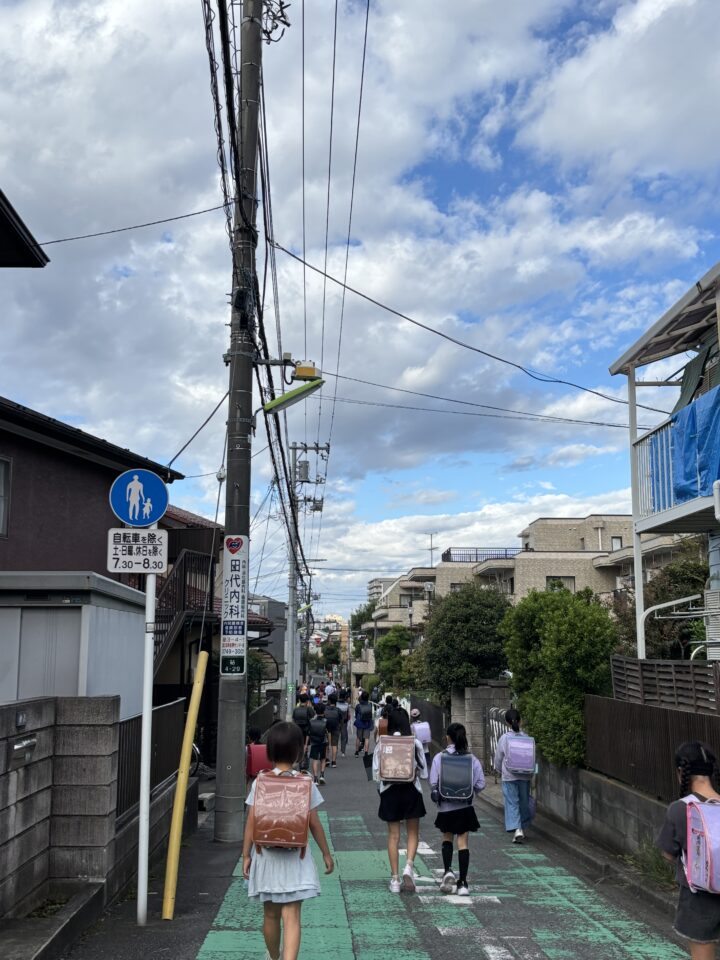 通学路には、子供達の歓声が響きます。毎日会っているはずなのに、お友達を見つけると、テンションが上がり、大声で会話が始まります。この時間帯は、ワンちゃんのお散歩時間とも重なります。通学路に出没するどのワンちゃんも、お利口で子供好き。子供達に撫でてもらうのを楽しみにしているワンちゃんもいます。秋の空にきれいな雲。パトロール活動を無事に終えると、気持ちが晴れやかになります。