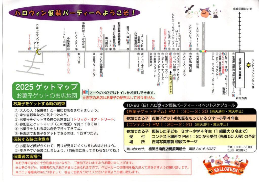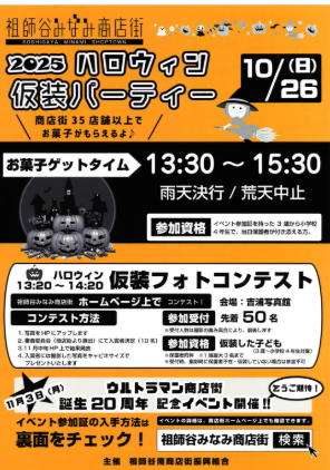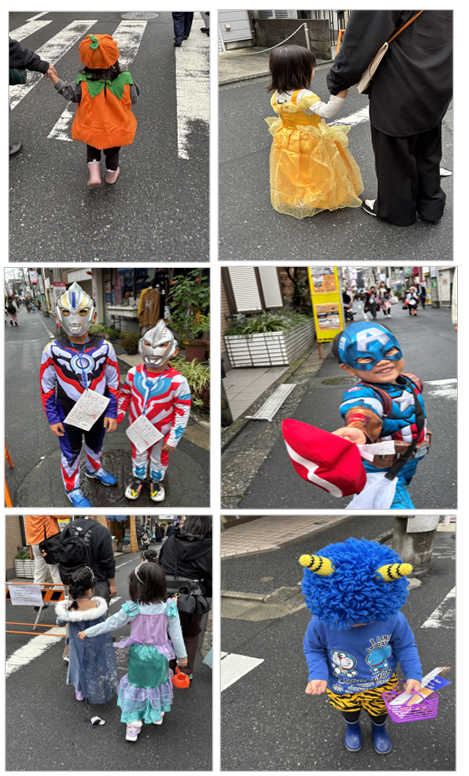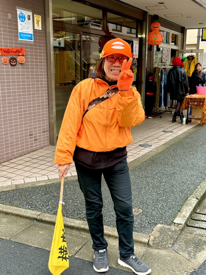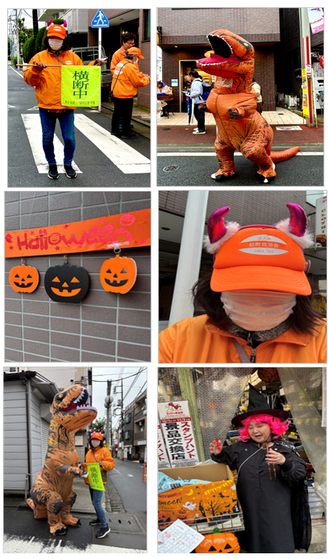 祖師谷みなみ商店街主催の、ハロウィンイベントが10月26日(日)に行われました。天候が危ぶまれましたが、雨天決行!なんと奇跡的に、開催時だけ雨が降らなかったのです。「誰の日頃の行いがよかったんだろうね?」顔を見合わせて話し合いました。曇天ながらも、商店街は大盛り上がりの様相です。この日に備えて、イベント参加賞をゲットして、扮装も準備、待ち構えていたお子様たち。続々と町にくり出してきます。今年も、楽しく賑やかに、町中に笑顔と歓声が飛び交いました。ハロウィンのテーマカラーもオレンジ色。祖師谷みなみ商店街の皆さまのユニフォームも、オレンジ色のジャンパー。そして、法人格 砧町自治会のテーマカラーもオレンジ色。そんなこんなのご縁にあやかって、法人格 法人格砧町自治会のメンバーも、オレンジジャンパーで交通整理のお役目で協力いたしました。