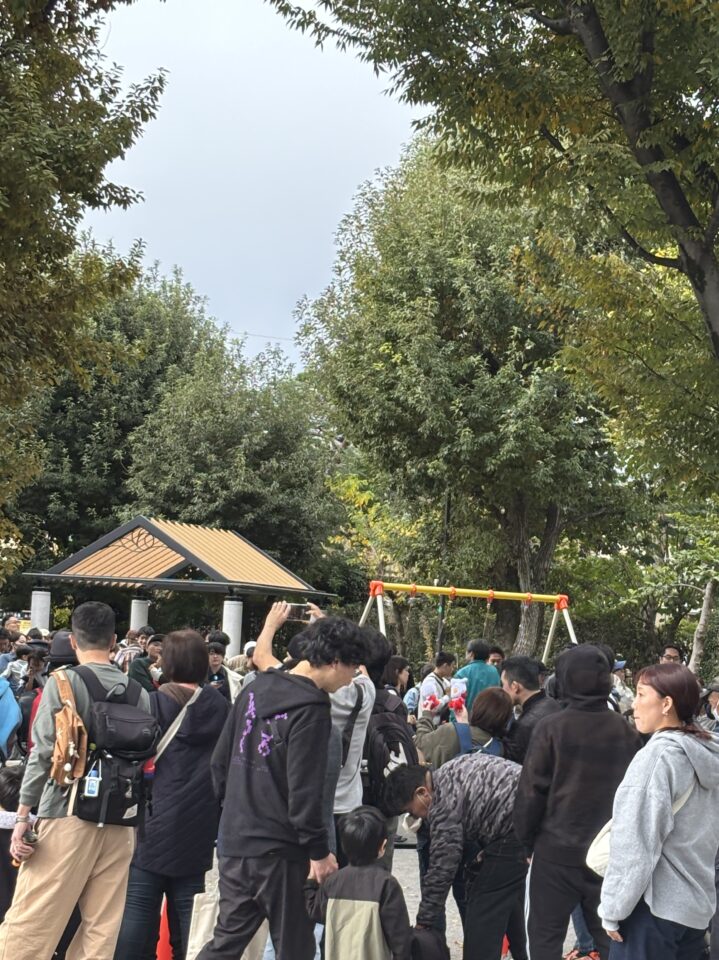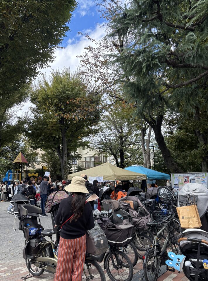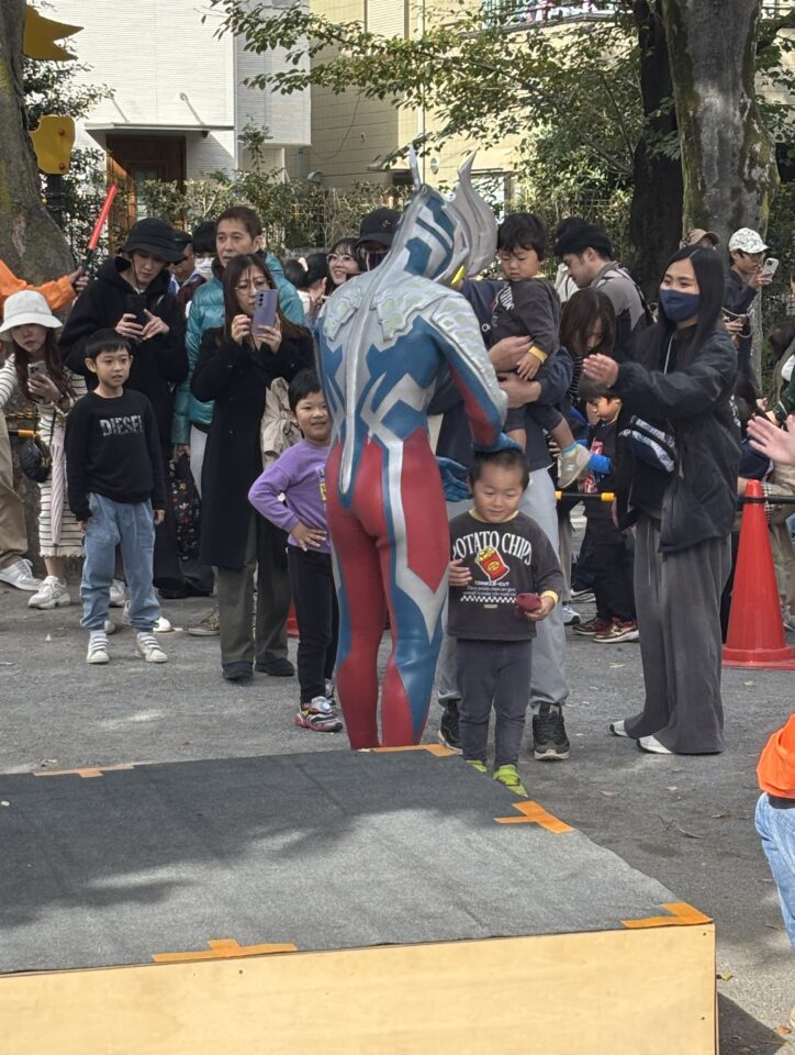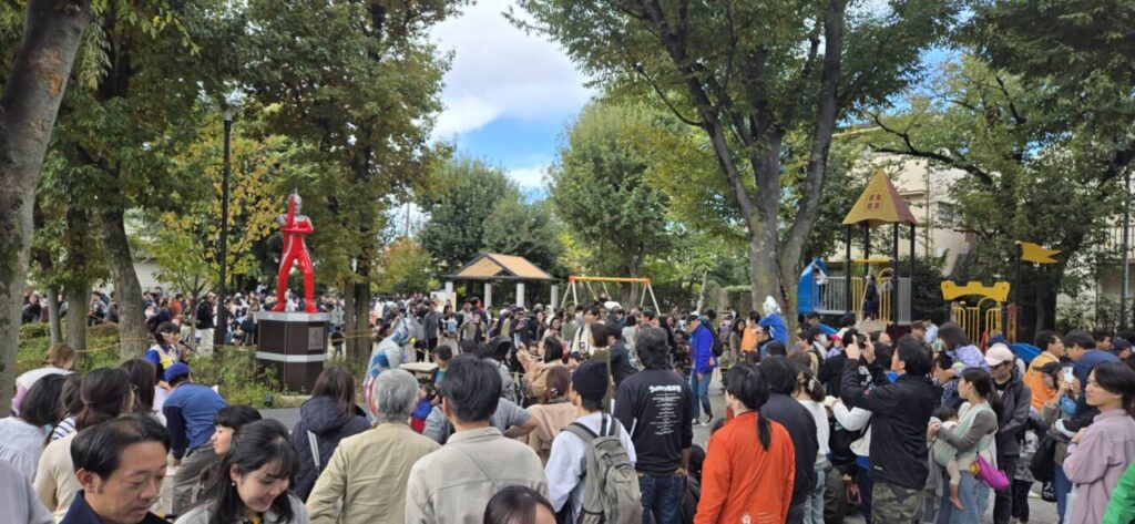 自転車や乳母車が大挙してやってきて、その誘導にてんやわんや。公園内で行われている、塗り絵や売店も見ることが出来ませんでした。こんなにこの公園に人々が集うのは、法人格 砧町自治会主催の夏の「納涼盆踊り大会」以来の事。駅前広場では、ウルトラマンの握手会。地域の大学の文化祭も開催されていました。そんなこんなで、この日も地域でエンジョイ。住民の皆さまとの絆が深まった一日でした。(広報部 部長K)