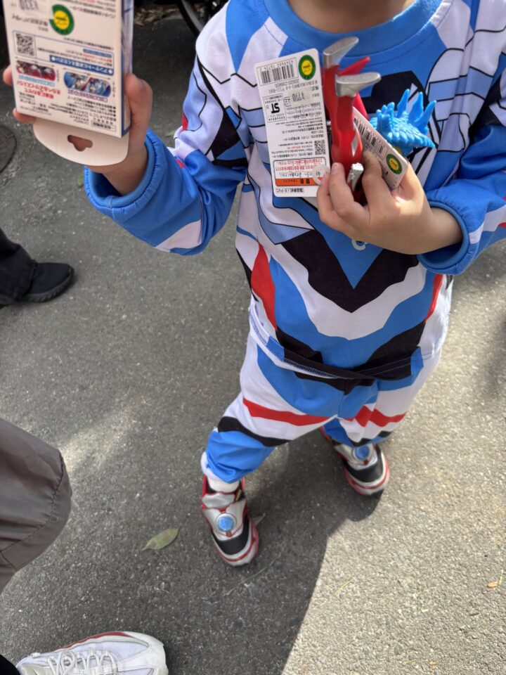 ウルトラマンゼロは、ウルトラセブンを父にもち、外見もセブンに似ているのですが、体色は上半身が青で下半身が赤という、ウルトラ戦士には見られない基調をしており、頭部にはセブンのアイスラッガーと同型の武器ゼロスラッガーが2本装着されているそうです。胸にはカラータイマー、セブン譲りの光線技や切断技、師匠であるウルトラマンレオから教わった宇宙拳法を駆使して戦う最強のウルトラ戦士だそうです。さて、ウルトラマンの兄弟は何人いるのでしょう?ゾフィー、ウルトラマン・ウルトラセブン・ウルトラマンジャック・ウルトラマンエース・ウルトラマンタロウ・ウルトラマンレオ・・・・・もう誰が誰だかわかりません。会場には、ウルトラマンのコスチュームを身にまとったり、お面を被ったりした子供たちが多く見られました。手には、それぞれがウルトラマンのフィギアを持っています。保護者の方も、ウルトラマン世代なのか、お子様よりはしゃいだ笑顔が見られました。今日の八丁目児童遊園は、ウルトラマンゼロの握手会。会場警備の私たちも、そのお姿を拝見したかったのですが、遠くからうなじがちらりと見えただけでした。ウルトラセブンの像とウルトラマンゼロの貴重なツーショットも、しっかり見たかったです。