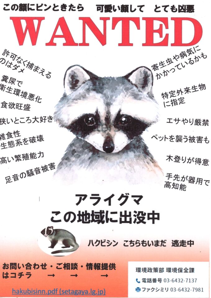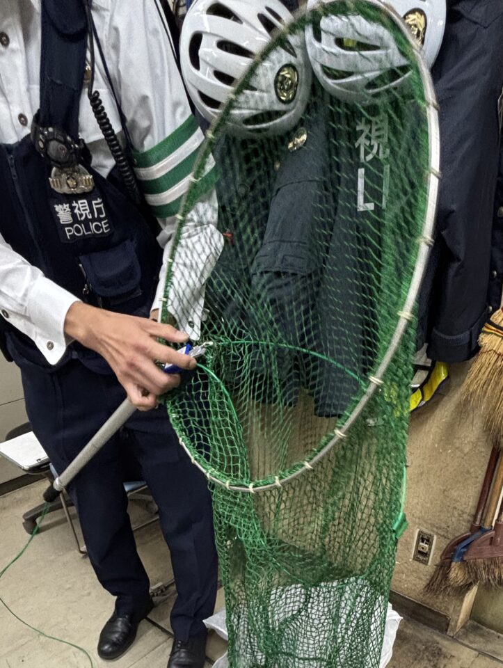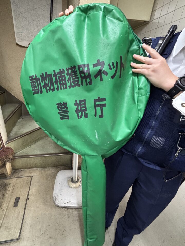 明治7年に東京警視庁に初めて設けられた「交番所」は、日本発祥のシステムです。当時は警察署から特定の場所に出向いて、交替で立番するので交番所になりました。日本発祥なので英語でも「交番」(KOBAN)と呼ばれいます。ブラジルのサンパウロ州では、交番を設置したところ犯罪件数が激減したそうです。日本独自の仕組みが海外に輸出されているのは、興味深いですね。そんな交番の中に、目を引く物を見つけました。「動物捕獲用ネット 警視庁」と明記してありました。中身も見せていただきました。これで、アライグマ、ハクビシンなどの小動物を捕獲するそうです。こんなことまでやって下さって、本当に頼もしいですね。(広報部 部長K)