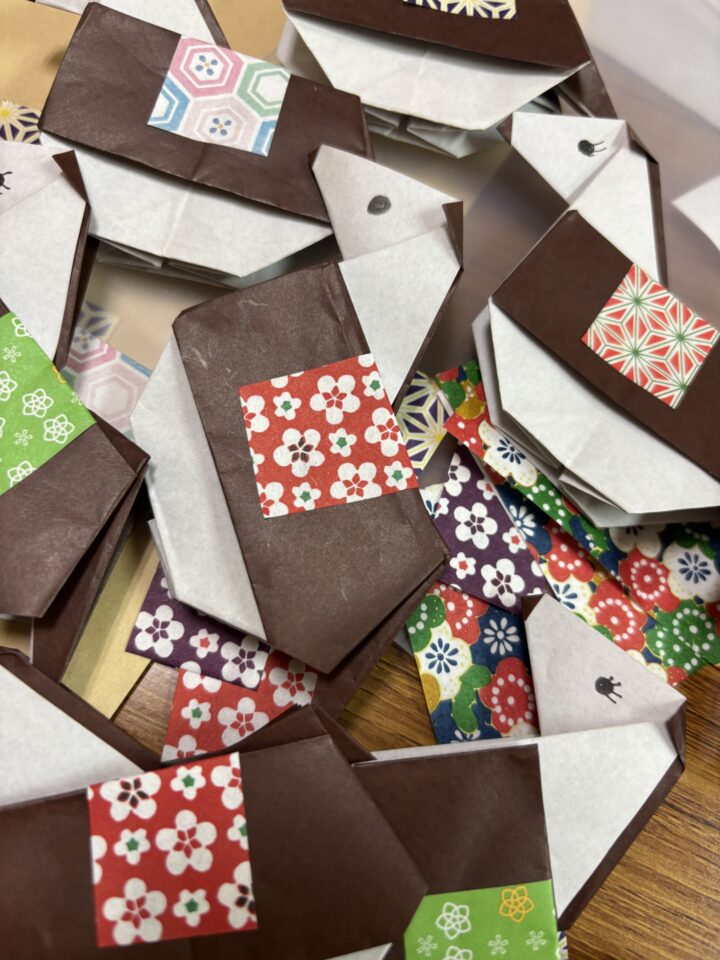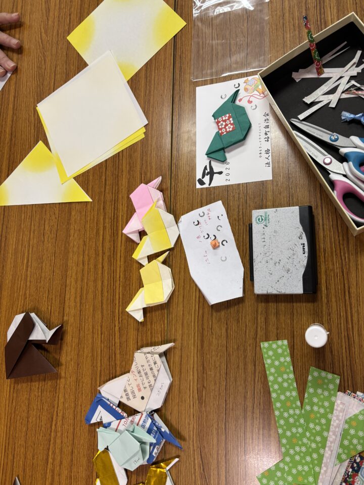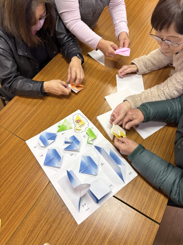 新年に向けて毎年、干支の折り紙を折り続けてきました。折り紙の「折る」という字は、「祈る」という字に似ています。特に千羽鶴を折る時には、祈りを込めますね。私共も、来年の希望と、地域の安全などの祈りを込めて、折り上げました。手は休めずに、賑やかにおしゃべりの花が咲きました。来年も、この地域が安全で安心で、安住の地でありますように。「今年もきっと ウマくいく!」のメッセージと共に、台紙に貼りつけて、完成いたしました。(広報部 部長K)