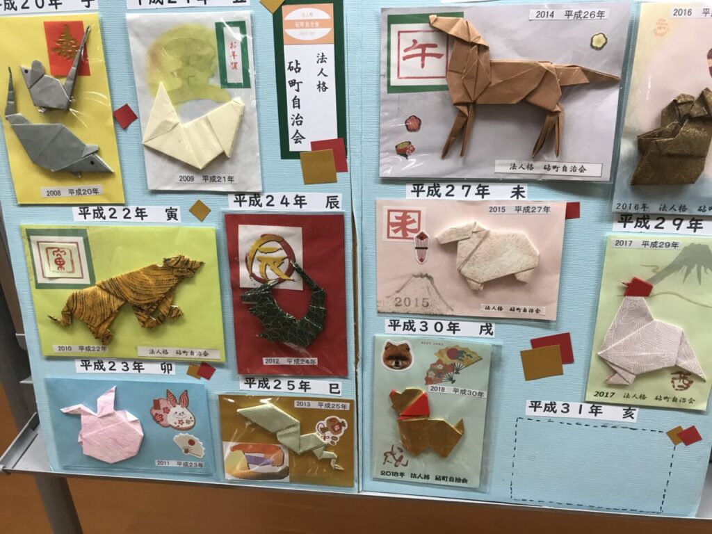 11月20日(木)新年に向けて、法人格 砧町自治会小会議室で、来年の干支、馬の折り紙を作成いたしました。これは毎年、法人格砧町自治会と関連のある皆様に、カレンダーと共にお配りしているものです。なんとも懐かしい。この画像は平成の時代に製作したものです。十二支揃ったところで、ボードに貼り付け、地元の小学校に寄贈いたしました。
