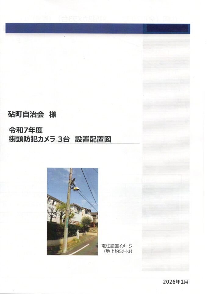 防犯カメラ助成事業により、ここ砧に新たに防犯カメラを3台増設いたしました。法人格砧町自治会所有の防犯カメラは、既存の3台に加え、これで6台となりました。設置場所は、砧4丁目に2台、砧6丁目に1台です。場所に関しては、法人格砧町自治会の希望と、警察の方のアドバイスに基づき決定いたしました。その他、この地域には、小学校や商店街で設置した防犯カメラもあります。プライバシーの侵害と心配される向きもありますが、これは監視カメラではなく、防犯カメラです。自治会関係者や、一般の方が映像を確認することはありません。何らかの事件・事故があった時にだけ、警察の方が捜査目的で確認することになっています。
